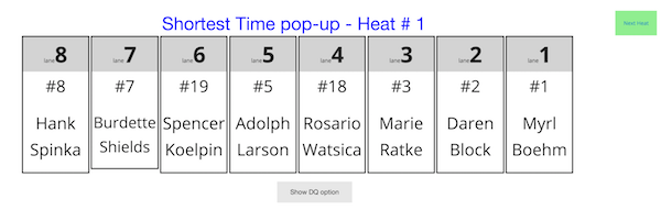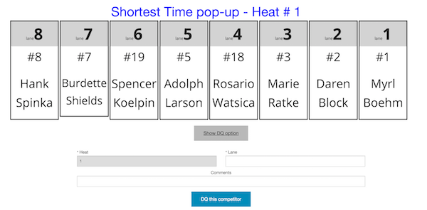 If someone doesn't show up, or is disqualified during their attempt, the track official can easily mark them as DQ.